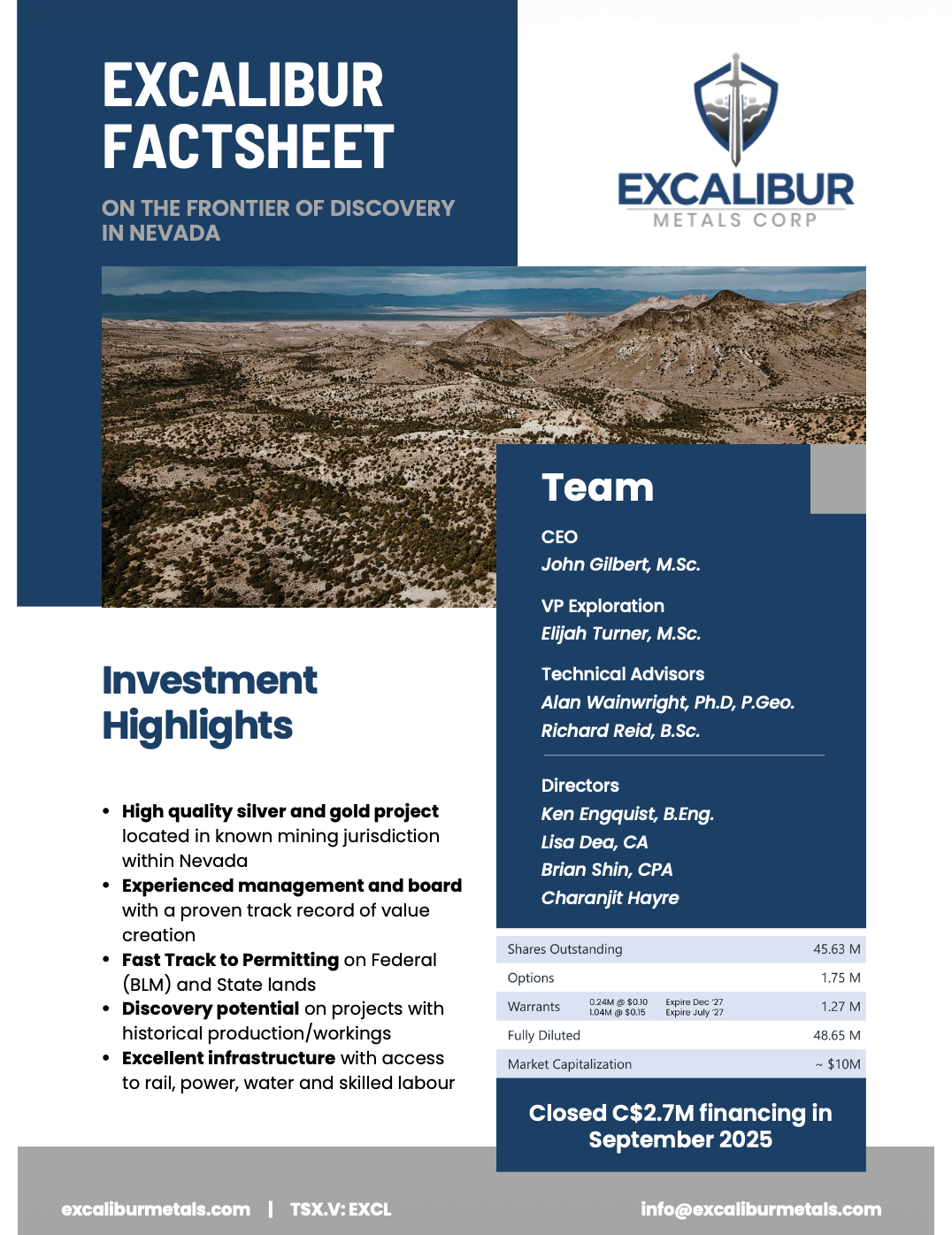 First Modern Dataset Since 1984 — Excalibur is generating the district’s first integrated exploration dataset in four decades, creating a new framework to systematically evaluate scale, continuity, and discovery potential.