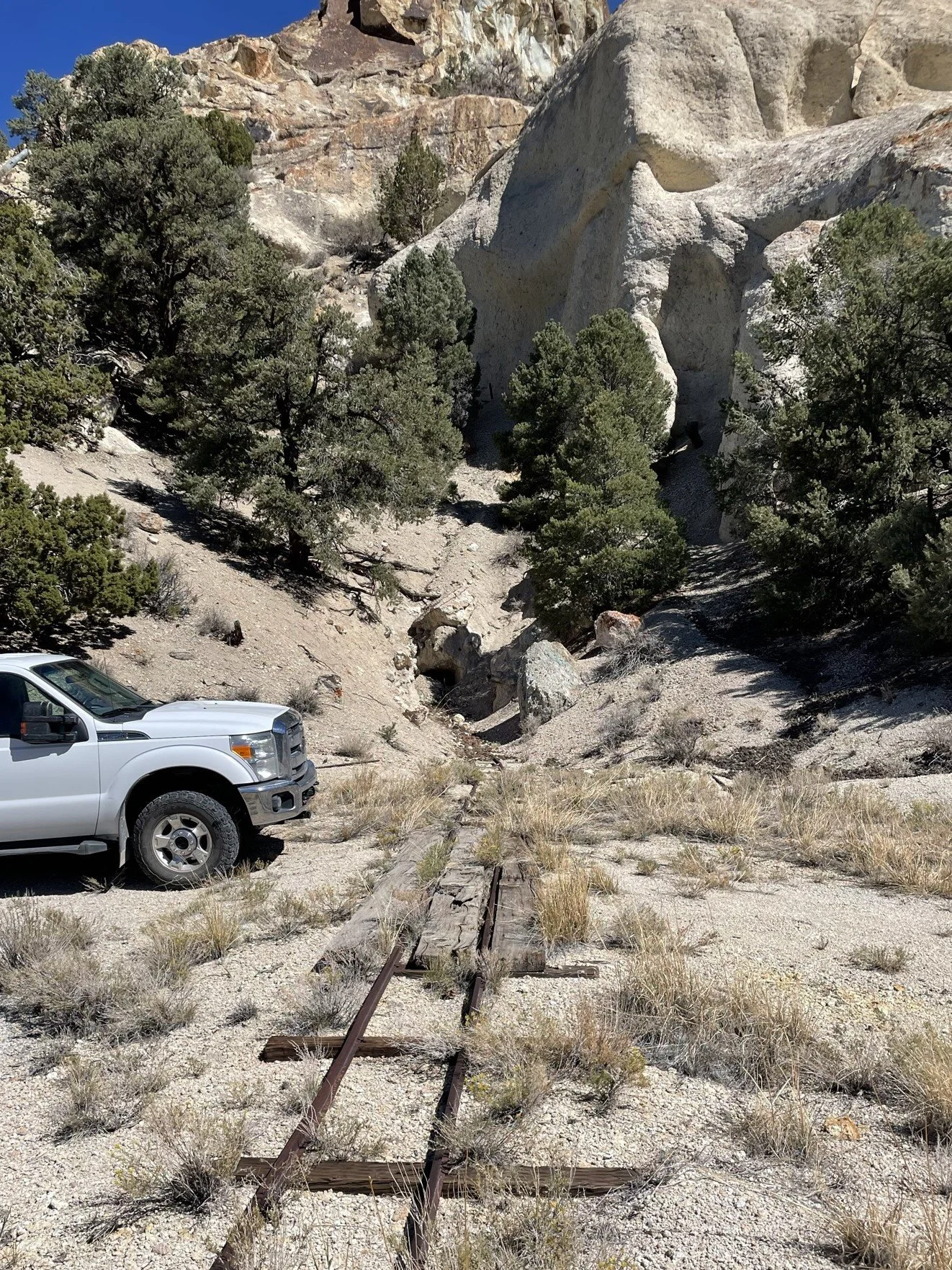 Silver and lesser gold were first found in the Bellehelen Mining District at the turn of the twentieth century. The first claims were staked in 1904 and the district was named after 2 mules, Belle and Helen. The district had its best years from 1909-1910 when about 500 people lived in tents and a few shacks at a townsite near the mouth of Bellehelen Canyon. All that currently remains of the Bellehelen townsite are several stone cabin walls and surface metal debris.